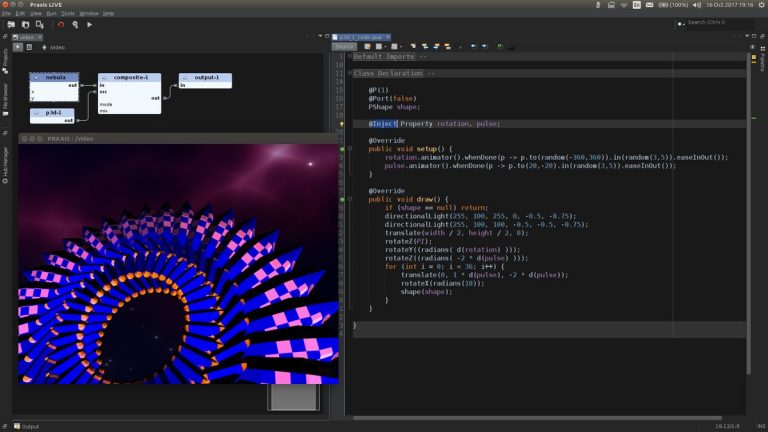 14:00 @ Piksel Studio 207 Neil C Smith Praxis LIVE is an innovative and powerful new way to work with OpenJDK and tools like Processing. Combining intuitive live visual patching with the ability to recode … Continue reading Praxis LIVE – hybrid visual IDE for live creative coding